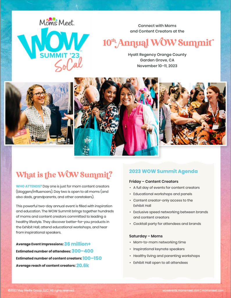 Maureen executes multi-channel brand campaigns for internal and external clients at May Media Group, LLC. In this example, she led creative and marketing strategy for the annual in-person conference WOW Summit, attracting influential content creators, moms, and better-for-you brand sponsors for two days of learning, networking, and product sampling. She wrote and collaborated with design on branding, web, UX, email promo, sales collateral, event sales, and social media.